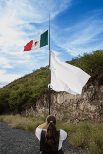 Hace unos años rescatamos un ave que parecía águila; la encontré paralizada en una noche de tormenta. Con una docilidad que quizá sólo se da por miedo o por sobrevivencia, aquella “águila” se postró en el antebrazo de mi pareja. Ambos tenían miedo, sí, pero eligieron confiar en el otro, no tenían opción. O quizá sí, pero atacarse no resolvería nada a ninguno. Supongo que la intuición los guió a los dos. Esa que algunos olvidamos escuchar y practicar. A pesar de los prejuicios, la metimos a la casa, estaba empapada. Todos nos mantuvimos cautelosos hasta que llegaron los especialistas y nos explicaron que era un halcón bebé y que seguramente la tempestad lo había desorientado y no sabía hacia dónde volar para regresar con los suyos. Me sorprendió saber que tanto las águilas como los halcones permanecen con sus progenitores dos años más o menos, durante los cuales les enseñan a volar, a cazar, a orientarse… y cuando han aprendido a ser independientes toman su rumbo. Aquel halcón había perdido, literalmente, la brújula. Me fascinó la historia de una cadena de aprendizajes generacionales para sobrevivir, para comprender el entorno y moverse en él. Las aves mayores y menores comparten esa brújula para saber cuidarse y vivir en libertad. Sentí envidia, ¿por qué a los humanos se nos priva de una brújula y en cambio se nos enseña a seguir instrucciones y acumular información de quienes la atesoran? Lo contrario a construir pensamiento propio, como cuestiona Rita Segato, para sencillamente saber vivir. Utilizar nuestras brújulas para elegir hacia dónde volar y en el camino aprender, tal como lo hace Tania Martínez Báez (Monterrey, 1989) en la exposición Honores a la bandera, que se presenta en Casa de Cultura San Pedro, en el municipio de San Pedro Garza García, Nuevo León, del 16 de agosto al 13 de septiembre.