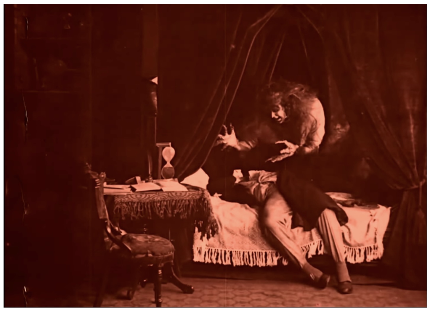 Frankenstein se desmaya ante su creatura (Dir. Dawley, 1910)