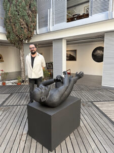 El artista en la Galería NN de Oaxaca de Juárez junto a su pieza