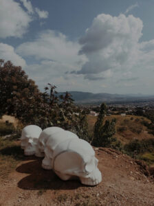 Polo Vallejo, Panacea en proceso, piezas en resina para escultura de bajo relieve de 83 cm x 75 cm x 107 cm cada pieza. Estudio del artista, Oaxaca, 2025