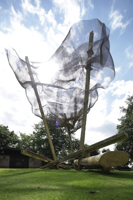 Su obra se desplaza con naturalidad del objeto individual a la instalación. No pocas de sus piezas han sido concebidas para interactuar con el espectador, no sólo desde la contemplación, sino desde la experiencia física. Construyendo la lluvia (2015), instalada en el Canary Wharf de Londres, es un ejemplo paradigmático: una nube de bronce sostenida por andamios que invitaba a los transeúntes a entrar, sentarse y mirar el entorno a través de su trama metálica. Luis Ignacio Sáinz lo resumió como la voluntad de “hacer del paisaje algo subjetivo”, de concebir el espacio como prolongación de la mirada personal.